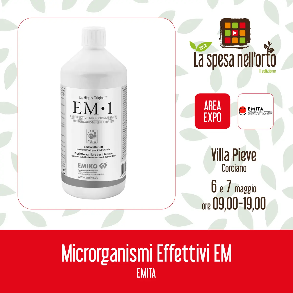 Evento La Spesa nell'orto maggio 2023. EMITA sarà presenti nell'area Meet, nell'area Expo e nell'area Lab per parlare e dimostrare l'efficacia degli EM nell'quotidiano