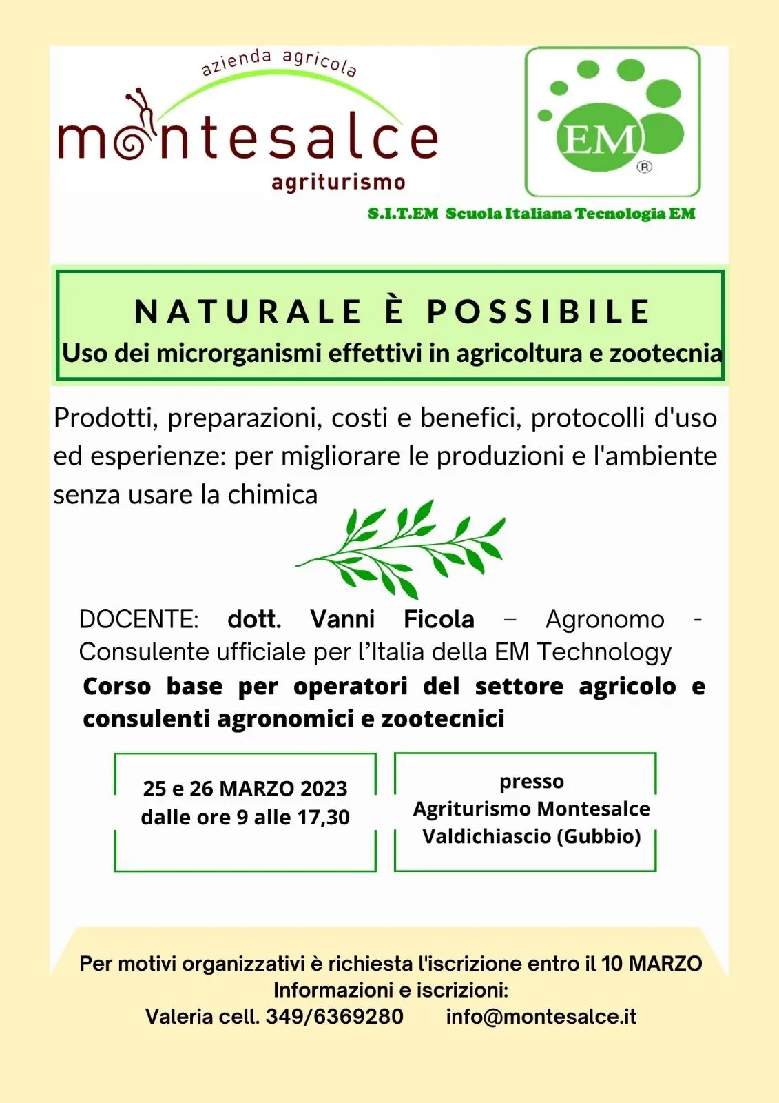 Parleremo dei Microrganismi Effettivi presso l'Agriturimo Montesalce di Gubbio il 25 e il 26 Marzo.